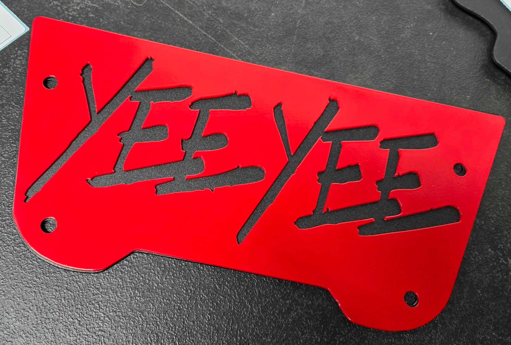 We are proud to have the new xmr 700 and we are making parts. This is the new radiator cover plate that replaces the silver dull looking plate on the xmr 700. It takes about 10 minutes to install. Simply remove 4 factory bolts from inside and put plate on outside and bolt back up. You use all existing bolts and a great upgrade